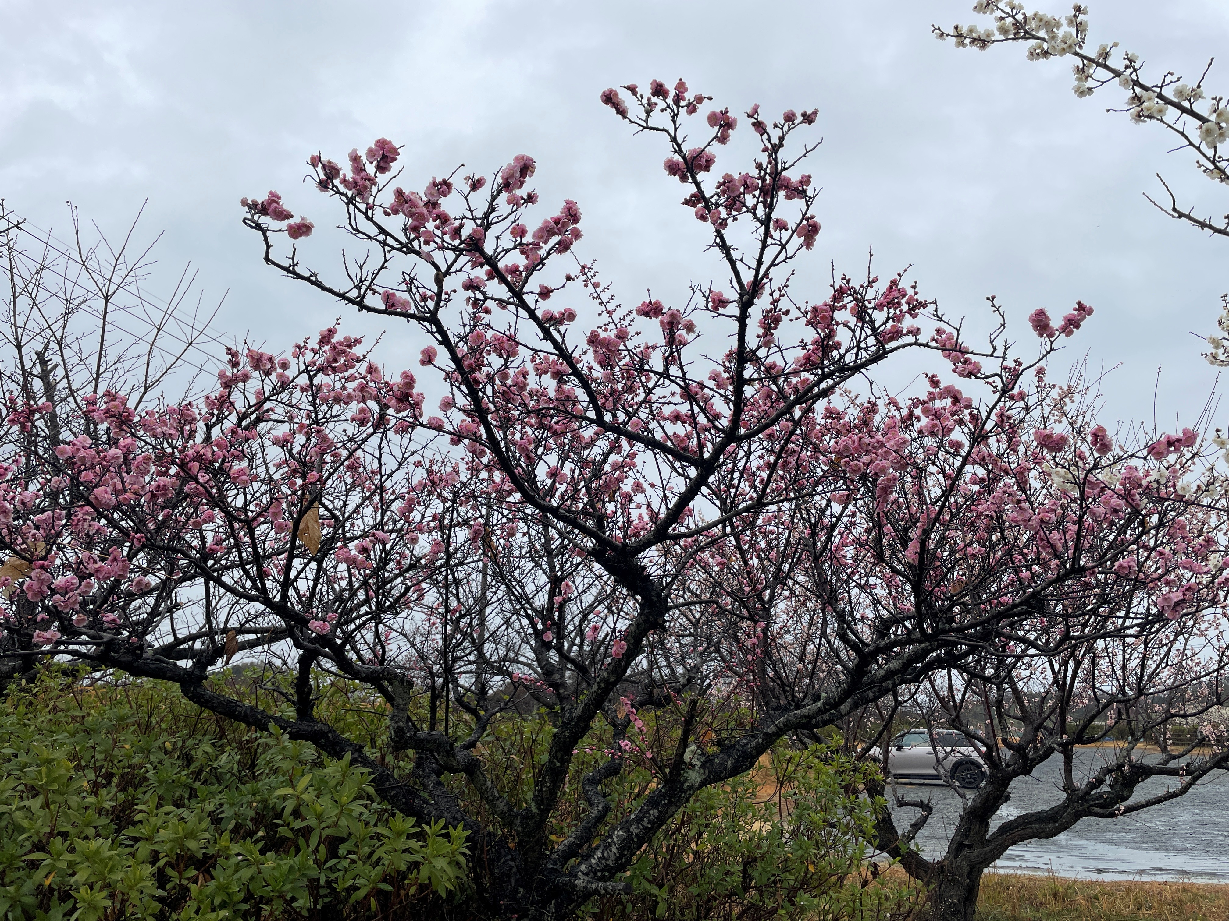 農園駐車場の梅の花が咲き始めました春ですね